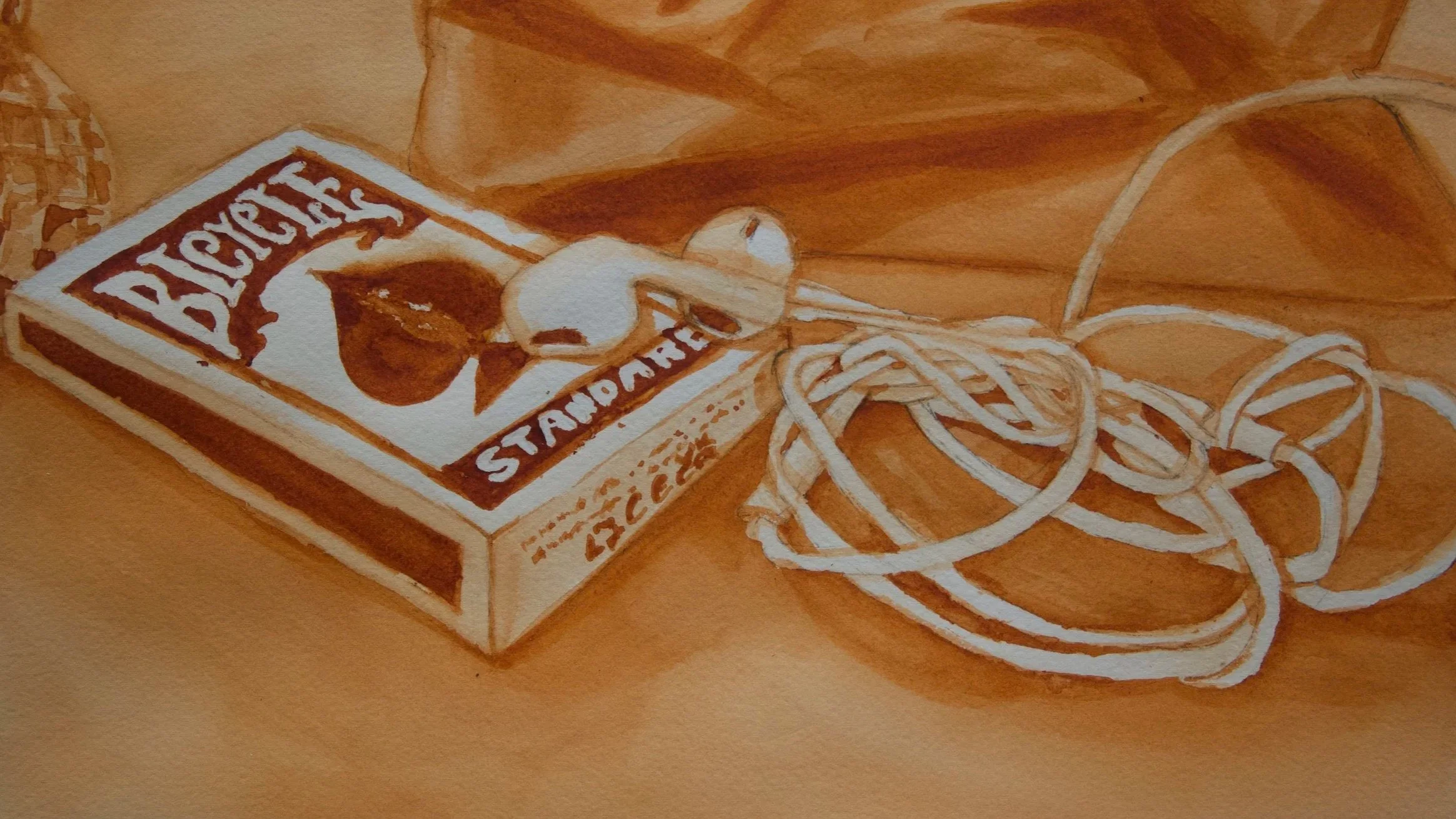 A monochromatic still life assignment where each student set up their own combonation if a paper bag, a box, a ball, and an item of your own choice. Rendered with watercolor , the piece highlights techniques such as wet lift, and use of liquid masking fluid.